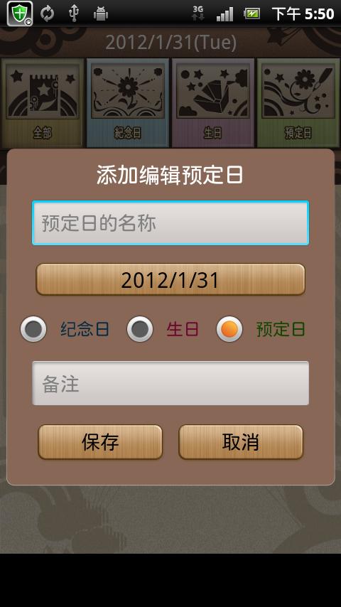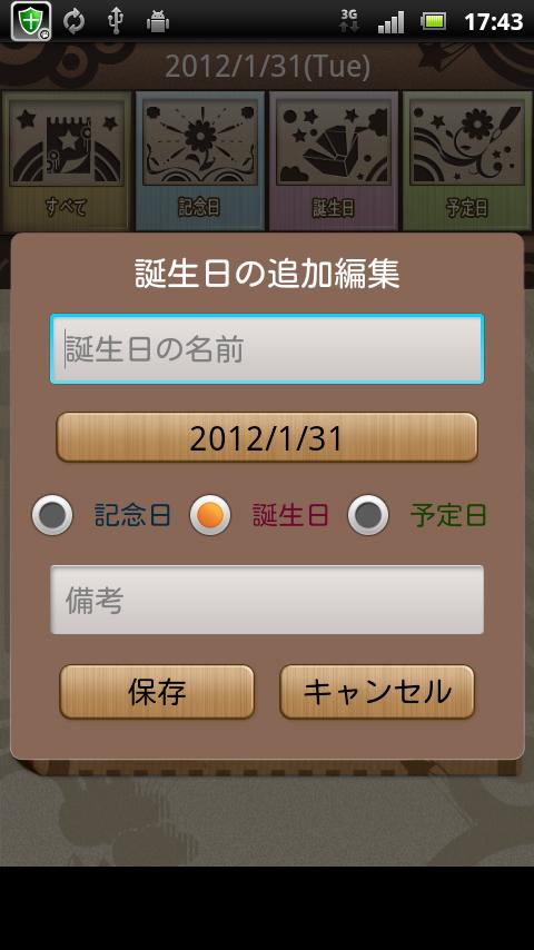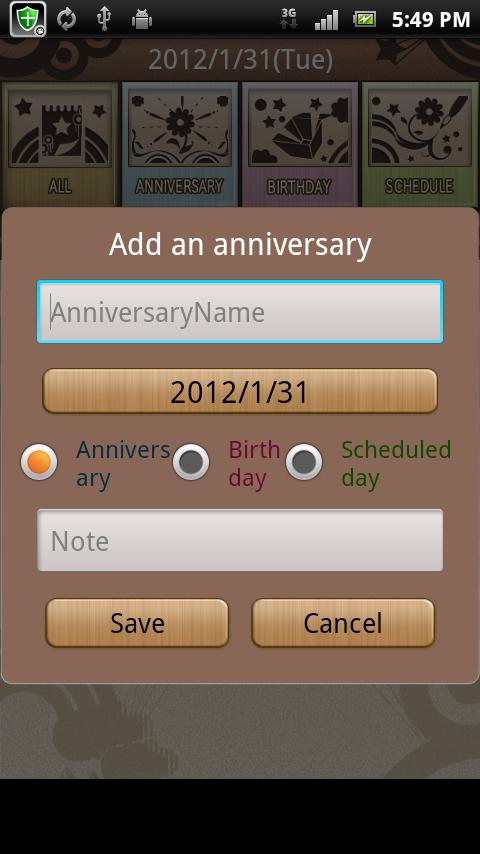 • The type of "Anniversary," "Birthday", "date" three patterns