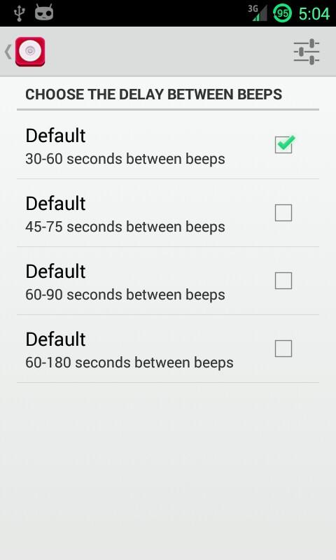 The Annoyolator uses an algorithm to produce a random beep at a random interval. The intervals are typically around one minute and there are 8 different beeps, so don't worry if you don't hear a beep for a bit, the app is still working. Set the app and then turn the screen off if you want. Go play a game or check another app if you prefer, because the Annoyolator will continue to run in the background until you turn it off.