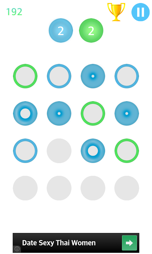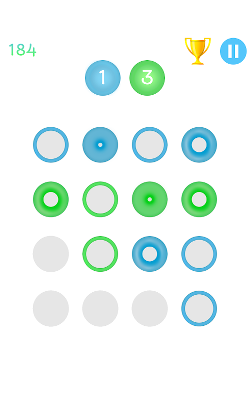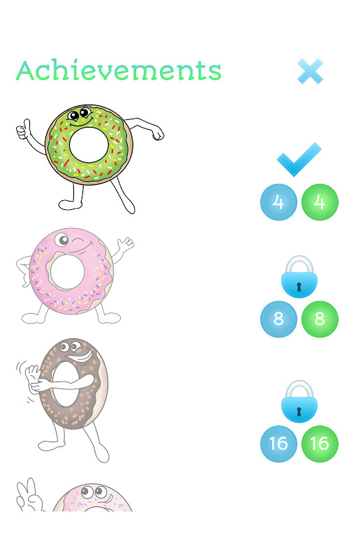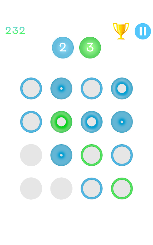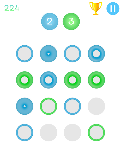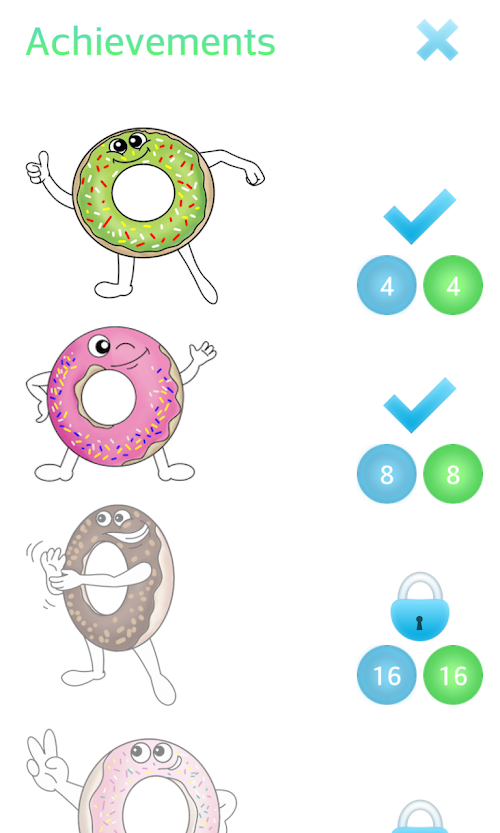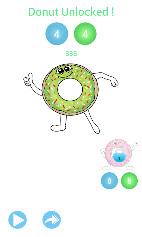 Play tactfully to hop through different levels and unlock donuts. Each donut reward requires certain number of blue/green circles.