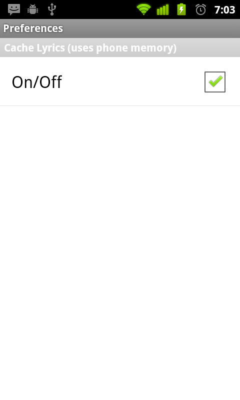 - While downloading the songs, you can choose to save the lyrics on phone memory(cache) so that you can access them without depending on internet. Or you can choose to use internet every time to import the lyrics.