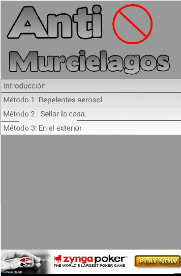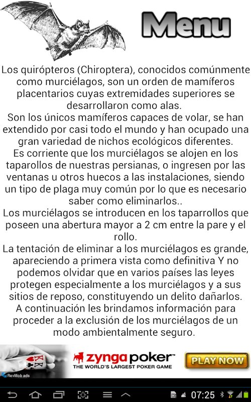 ADVERTENCIA: Los metodos expuestos en nuestra aplicación no garantizan que desaparezcan los quirópteros (Chiroptera), conocidos comúnmente como murciélagos.