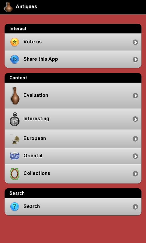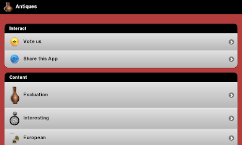 If you like antiques, you will like this app. Here you will find information, pictures and videos of antiques from all over the world. Whether you are a collector of antiques and art as if you're a history buff, you will enjoy our galleries of Classical Greece, the Medieval Age and Oriental antiques and more.