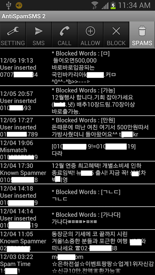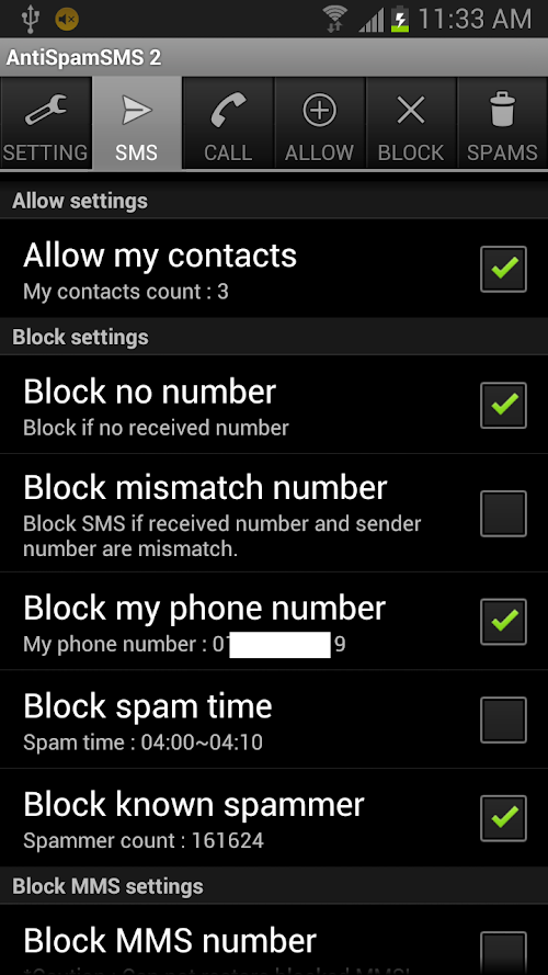 - MMS spam block / filter (* Blocked MMS cannot be restored)