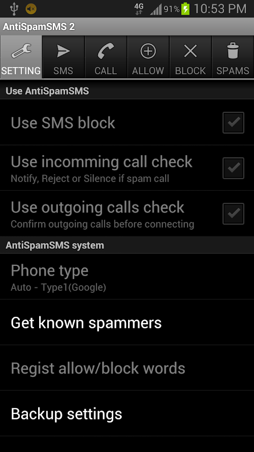 This version of AntiSpamSMS 2 Android App comes with one universal variant which will work on all the Android devices.
