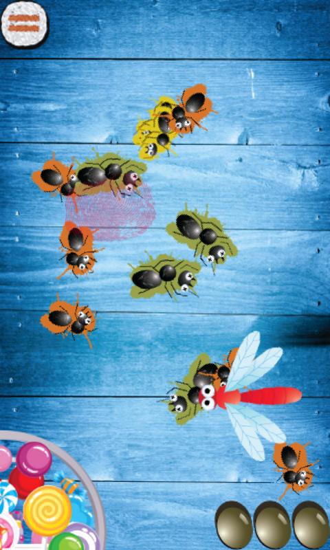 Ants are trying to reach to the candy dish and you have to block those with a finger touch. But don't touch others than ants.
