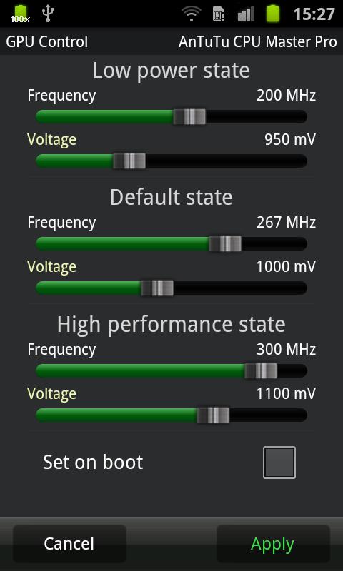 AnTutu CPU Master is a tool for changing the CPU/GPU speed (capable of overclock and underclock) on a rooted android devices to improve performance or save battery.