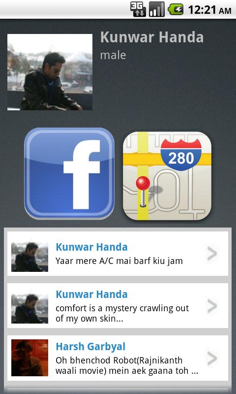 User can check the Facebook friends nearby and track their location, view their Facebook profile and see there latest posts. The user can filter out the list of Facebook users nearby and the Facebook friends nearby.