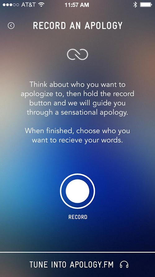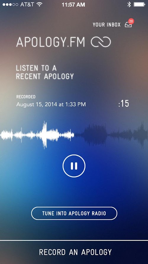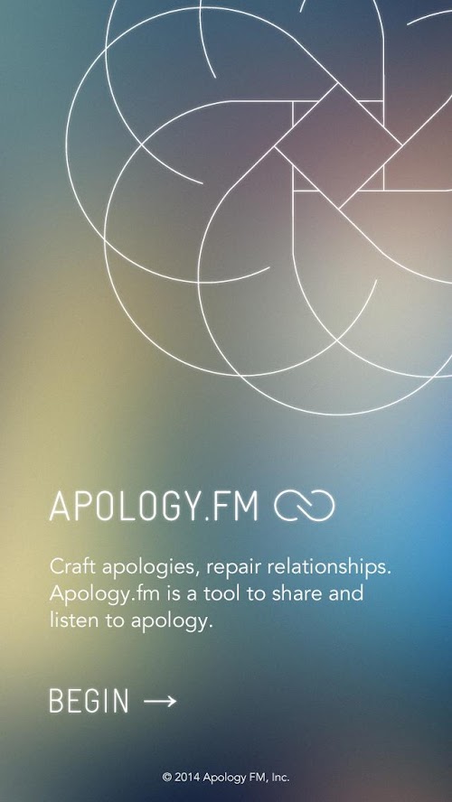 Tune in to apology.fm, a constant radio stream of anonymous apologies. If you want to craft your own apology, we will guide you through three-step process that will result in the creation of a heartfelt apology for someone you care about.