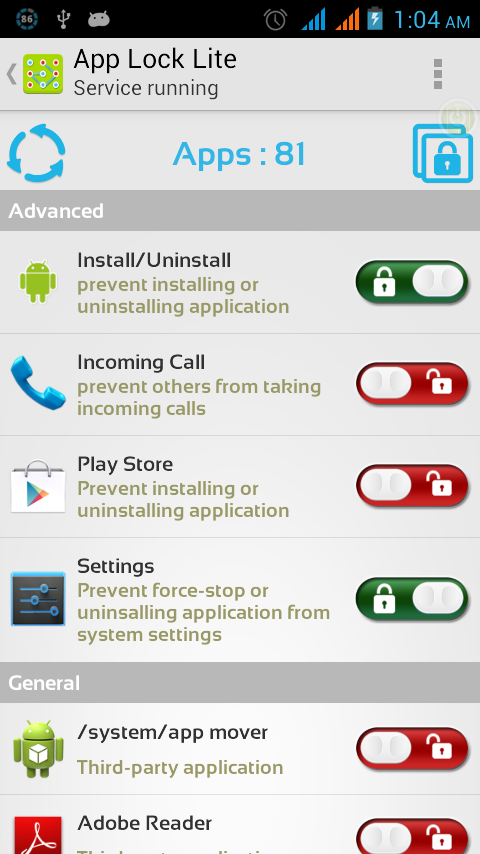 Note: If you want to lock WiFI or Bluetooth, please download my app App Lock Plus.