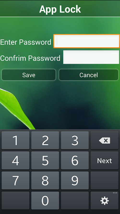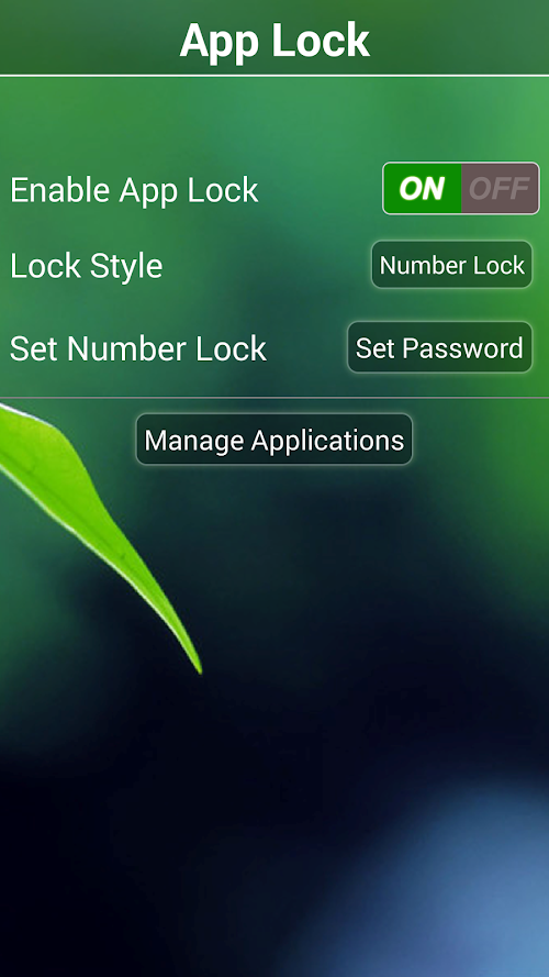 app lock gives options of two types locks, one is number password lock and other one is pattern lock.