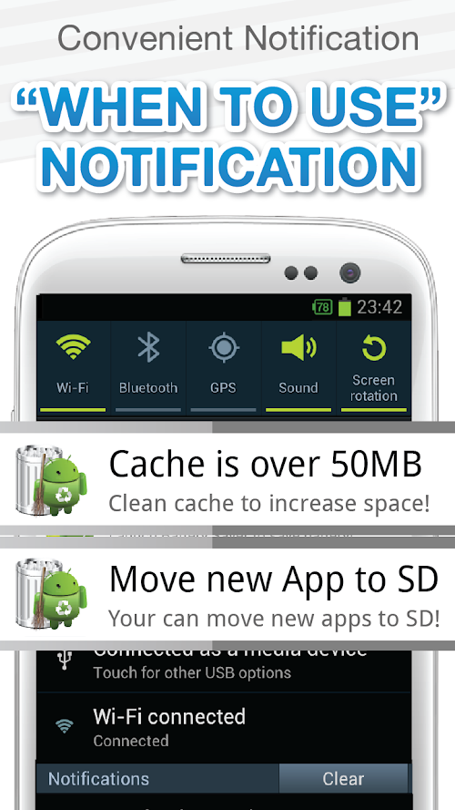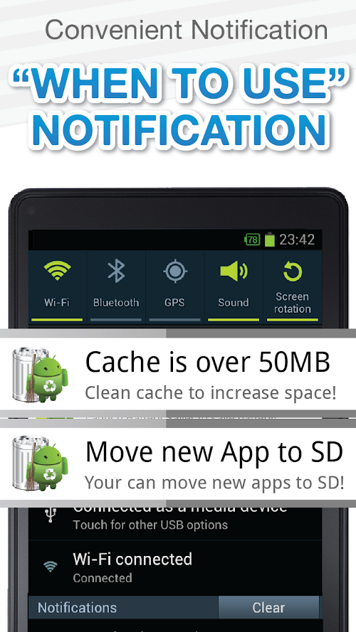 ✓ Notifies you when cache files exceeds 10/20/50MB (ON/OFF available)