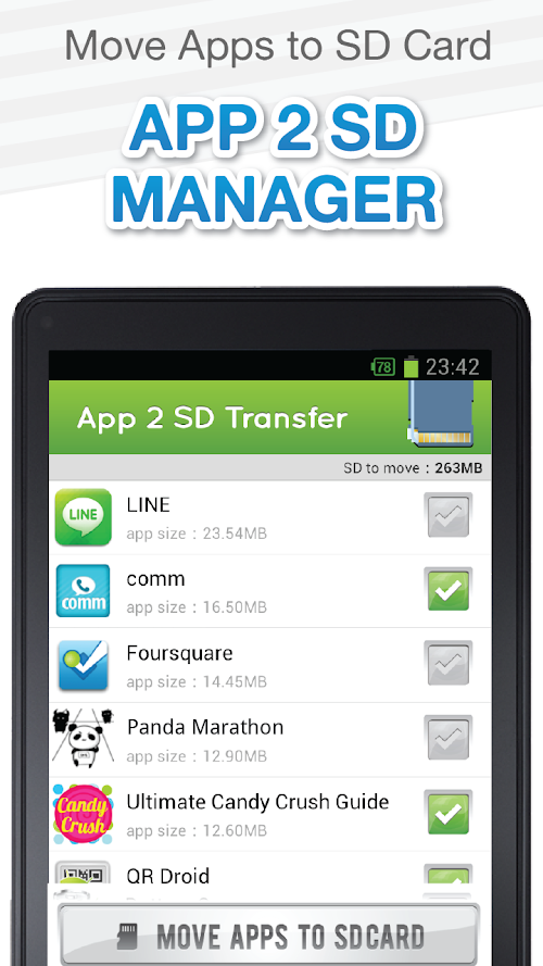 ✓ 1 click to transfer all apps to SD Card / or specified application