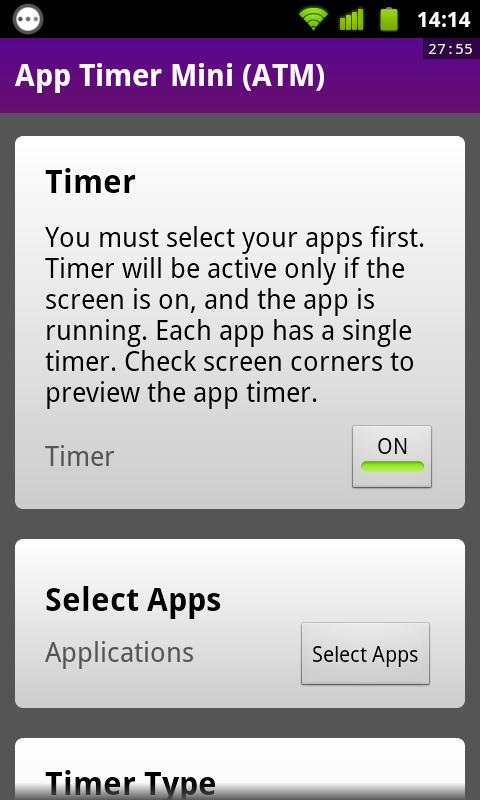 This version of App Timer Mini (ATM) Android App comes with one universal variant which will work on all the Android devices.