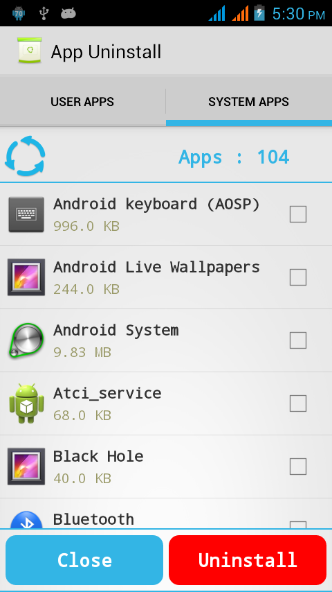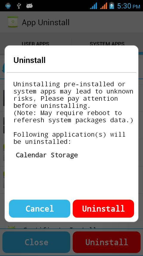 Uninstall Advanced is a powerful application uninstall tool. With root access, you can uninstall user apps with power and can get rid of even pre-installed apps.