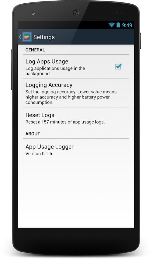 • Adjustable logging accuracy or just choose "Auto" to let the "App Usage Logger" to set the accuracy depending on your battery level.