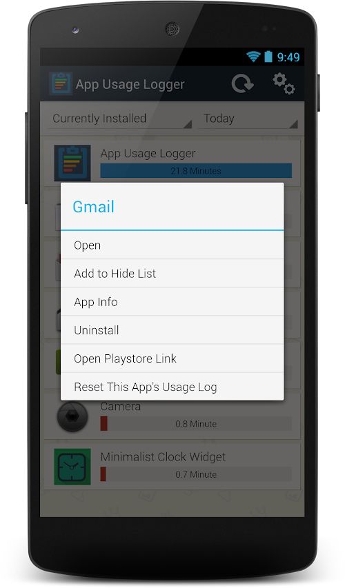 • The logging start automatically after boot (no need to start "App Usage Logger" manually every time).