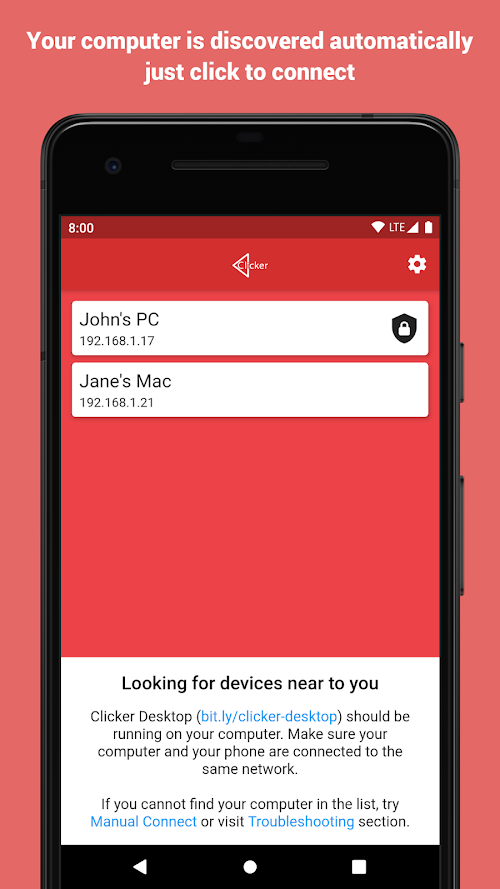 3. Run the app on your phone. Your computer will be discovered automatically.