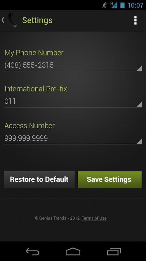 AppCall will automatically detect the international numbers and translate into proper dialing sequence to dial the local access number, plus any pin number (if needed).