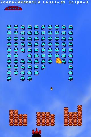 Each level is harder than the previous: aliens shall be more and more aggressive, more enemy missiles shall be fired, and the energy barriers shall be thinner.