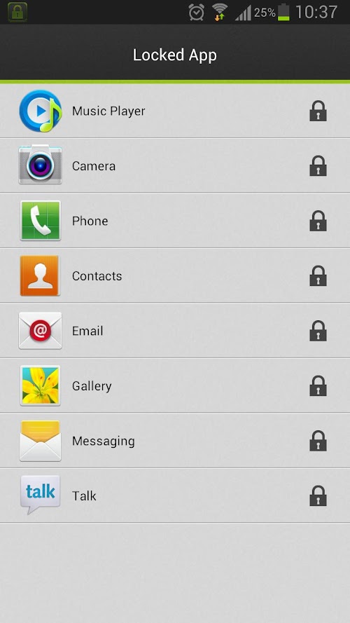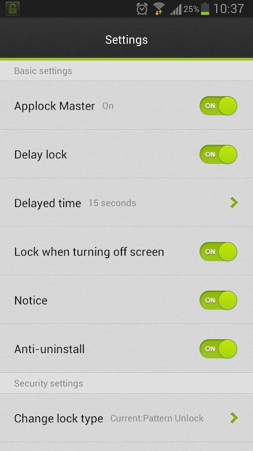 This app does not prevent you from stopping or uninstalling apps in the normal way (from the system Settings app). It's also possible to circumvent locked apps this way. You may ask - why don't we monitor apps so that if a user terminates one from Settings we can restart it with the lock? The simple reason is: that kind of constant monitoring is not only intrusive but is also tough on your phone's battery. Luckily there's an easy solution: simply lock the Settings app itself from Applock Master. Make sure you remember your passcode!