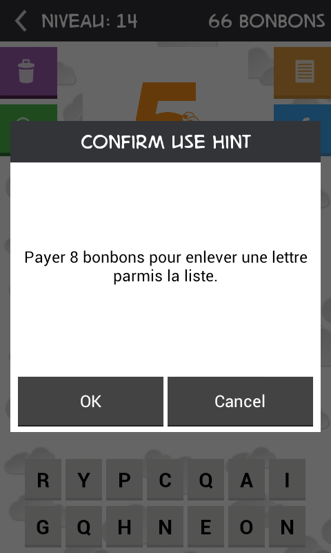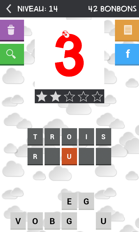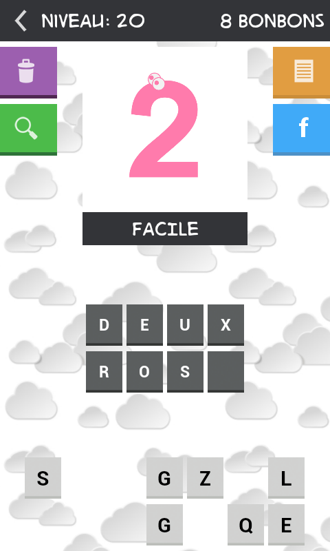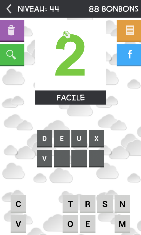 A correct answer entitles gains candy! Candy can be used to show letters, move to the next level ...