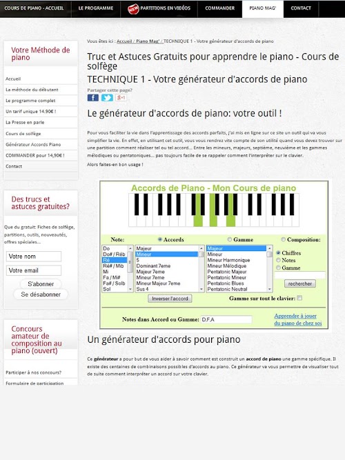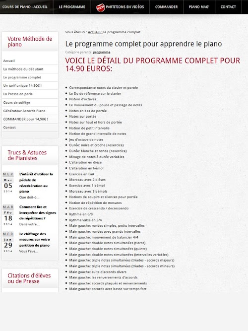 My-price-of-piano.com suggest you learn the piano in a few weeks thanks to a revolutionary method and especially for a single payment of 14.90 euros.