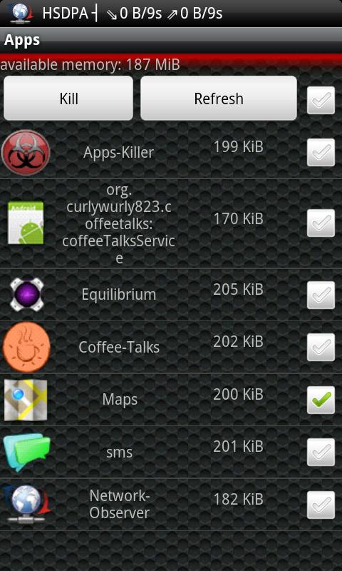 The intention of Apps-Killer is to get more free memory for other applications and to kill amok running processes to preserve system resources to extend battery life.