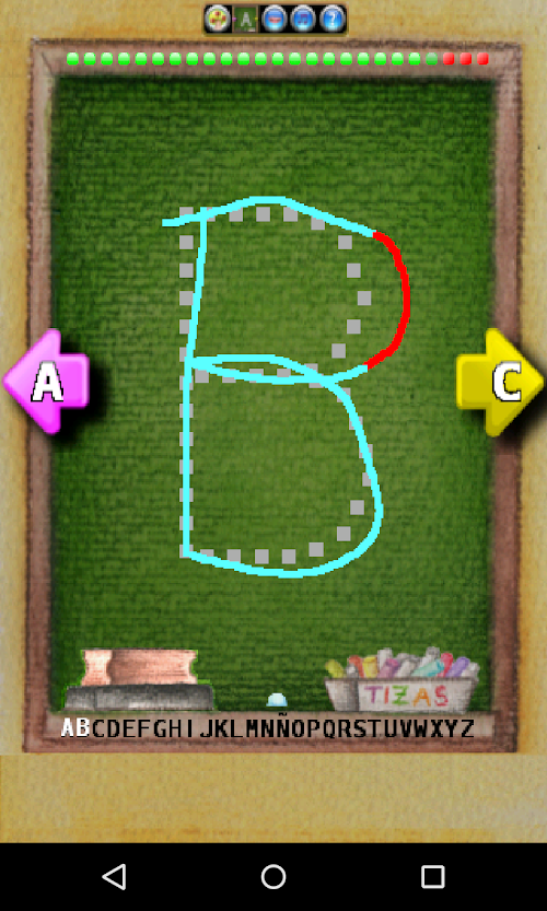 The educational game "learning to write" is designed especially for the little ones can learn to write letters and numbers in a simple and entertaining way. Based on the educational principle of experimentation and internalization is designed so that the kids use their fingers to make the correct stroke of each letter and number, acquiring precision and skill necessary to subsequently write with pen or pencil. Considering the educational principle of individualization, the pace of learning of each of the children who play with our application is scrupulously respected, since the level of perfection of each exercise can be chosen by adults in the options menu, adapting Thus each activity with the actual level of each child, and so we can monitor their progress. Moreover elements such as images, music and game sounds make it very attractive for the kids, as they can choose the color of chalk and its thickness, use the eraser if they are wrong, etc.