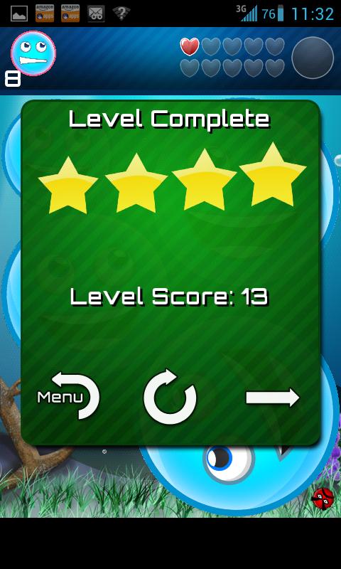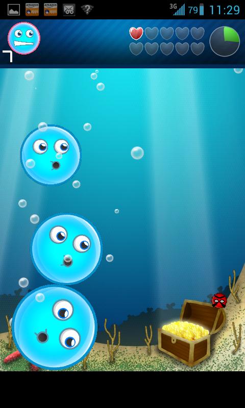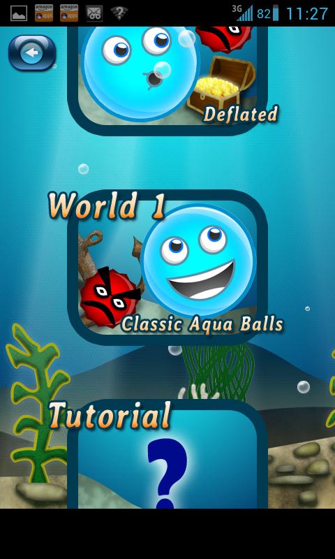 The Aqua Balls are at battle in an under water war with the Angry Balls! Press and hold to grow little Aqua Balls into the large bubbles, drag to run from enemies, and release once your Aqua Balls are large (but before an Angry Ball blasts your bubble!). Draw on your reflexes to tilt your device and watch as the physics engine sims the effect. Trap the Angry Balls as they shoot towards your Aqua Balls to complete the higher levels! Fill the screen at least two thirds full with Aqua Balls to win, but be careful not to let the Angry Balls pop your bubbles! There are multiple areas to play, each with a different set of game rules and 12 levels of increasing difficulty. Each area has unique music and graphics. Exercise your ninja skills to get 4 stars on every level in every area!
