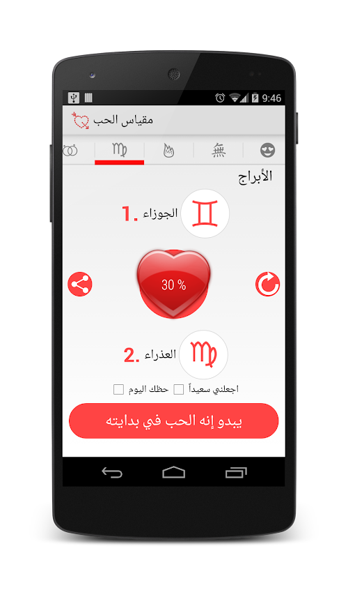 The مقياس الحب is a simple app that can be used to find out the match percentage between you and your dream partner.