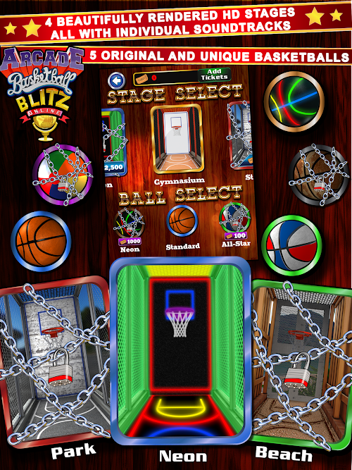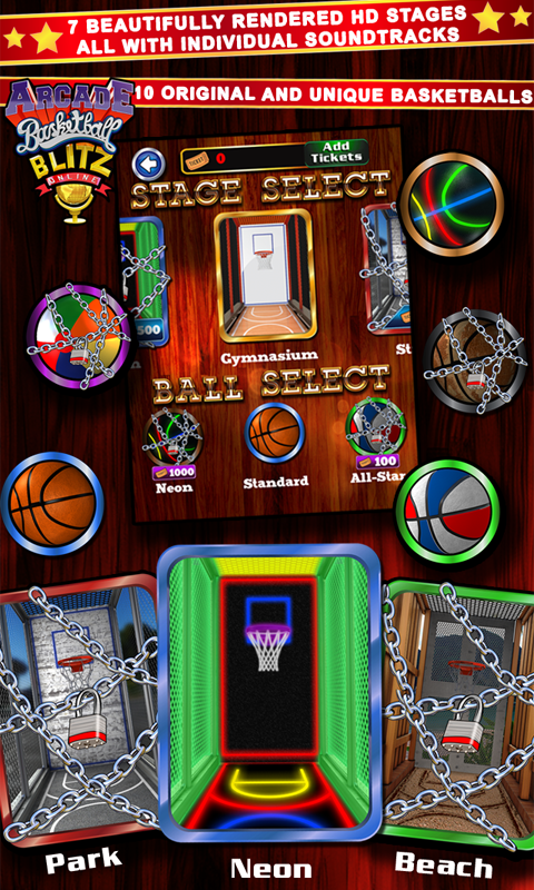 59 levels per stage, the Challenge Mode brings an all-new dimension to the game. New features include progressive difficulty and moving basketball rims on rails. Pick up right from where you left off with ladder saving.