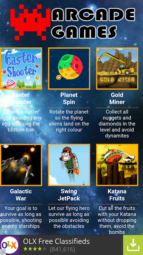 This version of Arcade games Android Game comes with one universal variant which will work on all the Android devices.