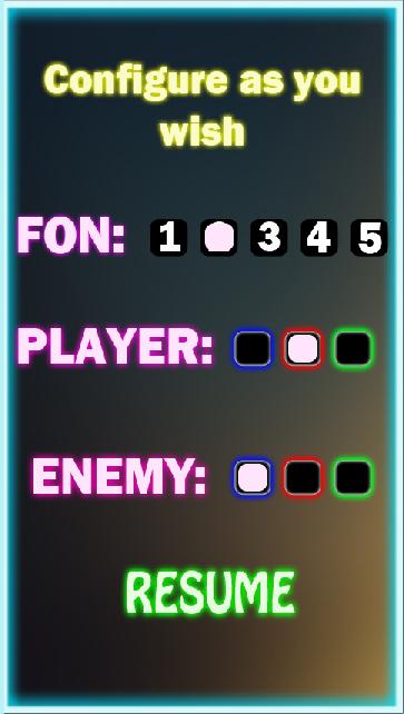 3)Возможность выбора 5 фонов, цвет противника и игрока (всего пока что 3 цвета).
