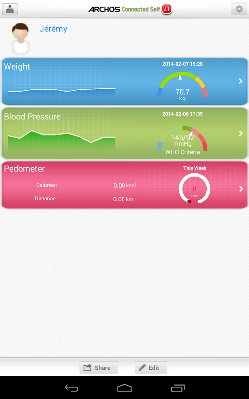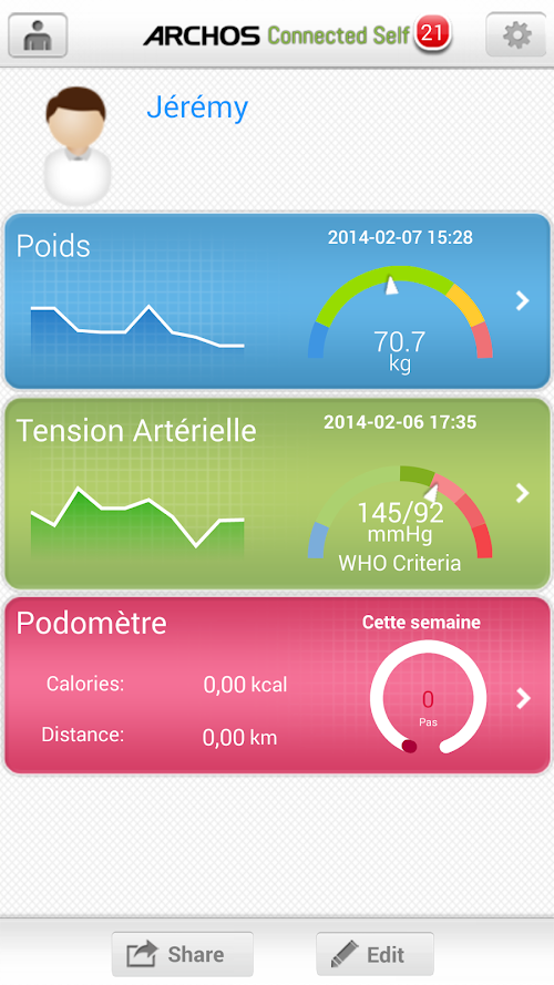 The ARCHOS Connected Self application and ARCHOS Connected Self objects help you to stay in shape easily. Thanks to the indicators and graphs you can easily follow your evolution and adapt your lifestyle to improve your well-being.