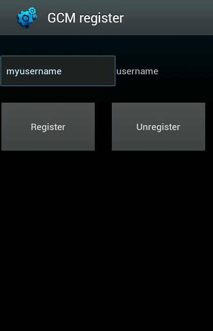 12.Sending messages via Google Cloud Messaging service.After registration for GCM in the application (enter an username and password and clicking on Register.