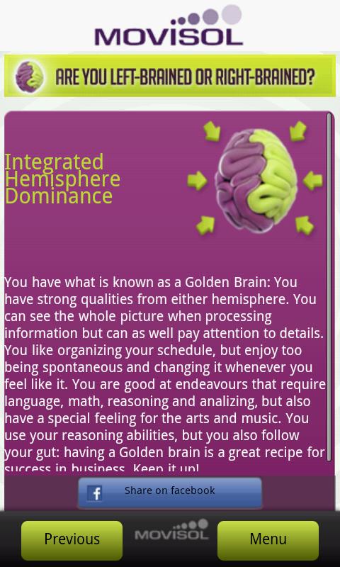 With this test you will find out which side of your brain is dominant and you will learn about the way you process information. Are you a list-maker? Are you usually late for appointments? Do you enjoy geometry better than algebra? Based on some simple questions, you will find out your hemisphere dominance and learn how to enhance the way you think.