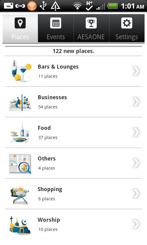 Users can track regions and get access to events and places in those regions. They're able to map these listings with the added benefit of navigation support and other location based services like distance based sorting. ArifLife with facebook and twitter to allow for easy sharing with friends and family.
