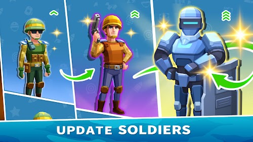 A wide range of Training Grounds for you to unlock! Target Training, Obstacle Course, Target Range, Urban Combat Course, Boxing Training, Grenade Range, Artillery Course, Tank Course... You can find them all here. All you need to do is tap and upgrade them. Invest wisely and develop your base with your funds, unlock training programs, improve your reputation, expand your armies, and build a powerful military and business empire!