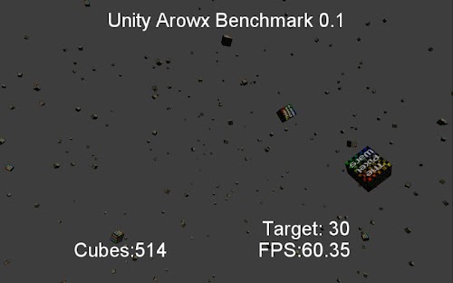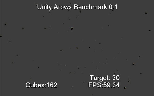 The app adds more cubes to the scene until the target of 30 FPS is hit. The cube counter will increase until you hit your devices benchmark.
