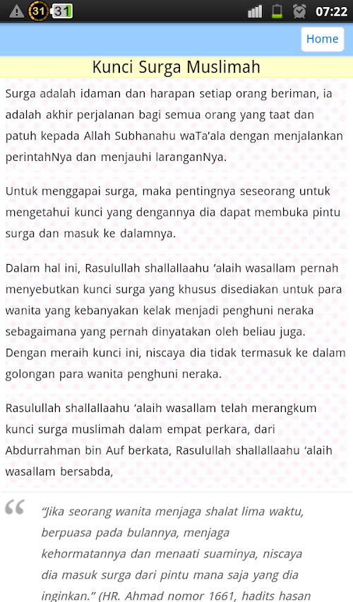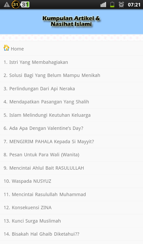 Aplikasi ini berisi kumpulan artikel dan nasihat seputar kehidupan didalam islam.