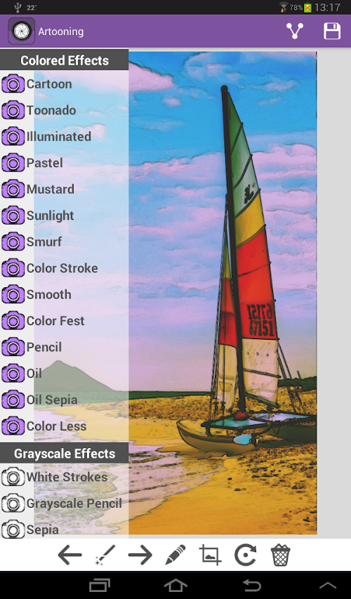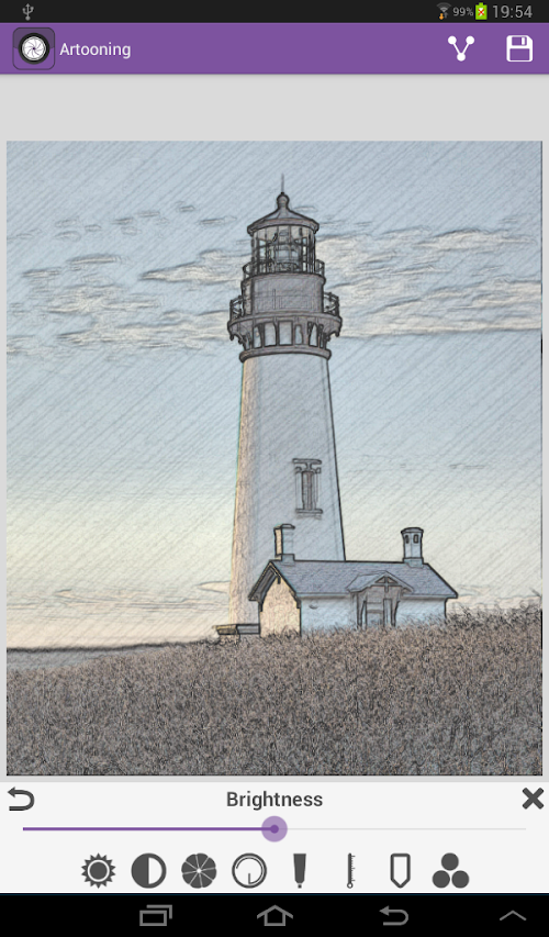 • Save - saves the edited photo in the Artooning folder at your phone's optimum resolution
