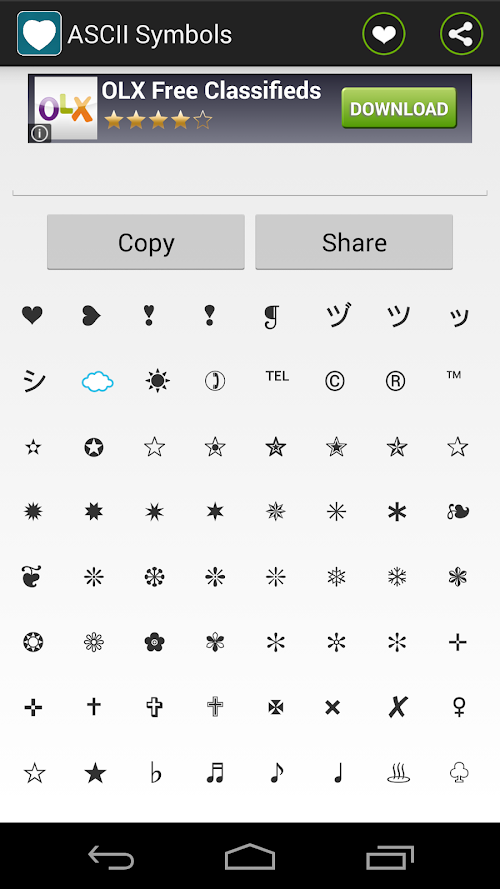 This version of ASCII Symbols PRO Android App comes with one universal variant which will work on all the Android devices.