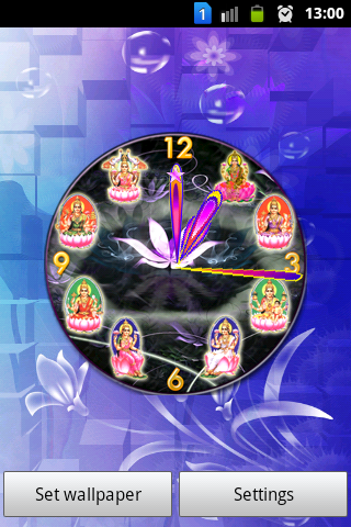 In this app 20 different types of clocks with Ashta Lakshmi photos on clock.