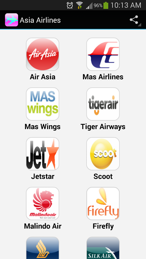 Description: Introducing our application "Asia Airlines", airlines that usually used to travel in Asia countries. You can book your flight via the links from our application. It's easy and convenient. Hurry up to install our app! Airasia, Mas Airline, Tiger Airlines, Scoot, Jetstar, Firefly, Malindor Air and so on. You can also grab the best Flights.
