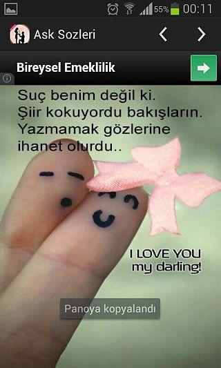 ✓ Ask sozleri hazir mesajlar olarak kullanilir.