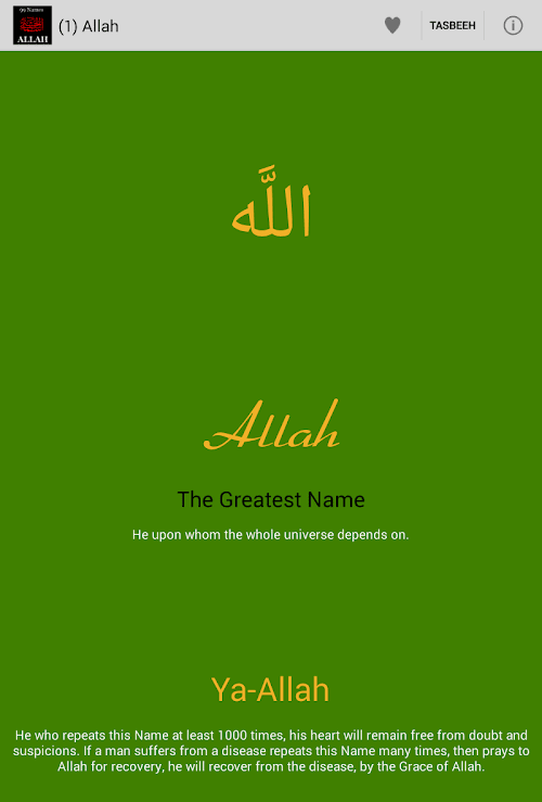 This version of Asma Al Husna Android App comes with one universal variant which will work on all the Android devices.