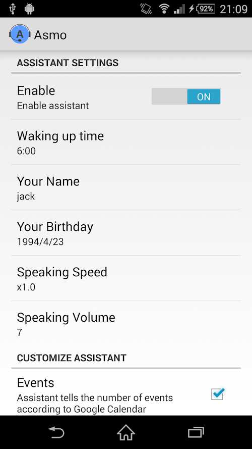 Asmo cannot communicate like Siri or Cortana. But Asmo tells information automatically unlike Siri or Cortana. This is as if your smart phone were a real assistant.