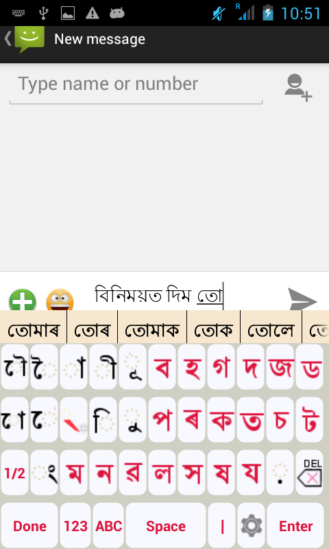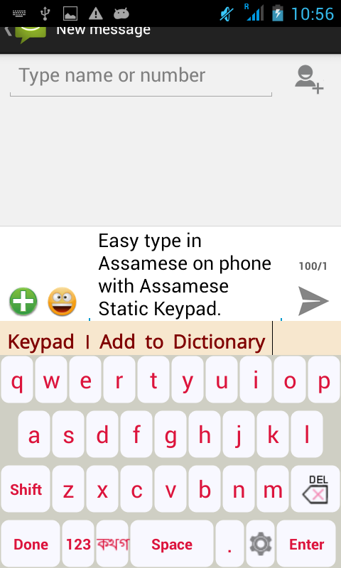 Using this Assamese static keypad, you can write in both Assamese(অসমীয়া) and English with intelligent and accurate dictionary predictions on both Android phones and tablets. Numbers, symbols, smileys, attractive extras are also supported.
