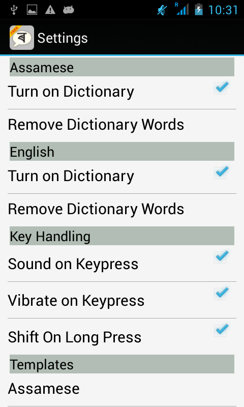 This version of Assamese Static Keypad IME Android App comes with one universal variant which will work on all the Android devices.