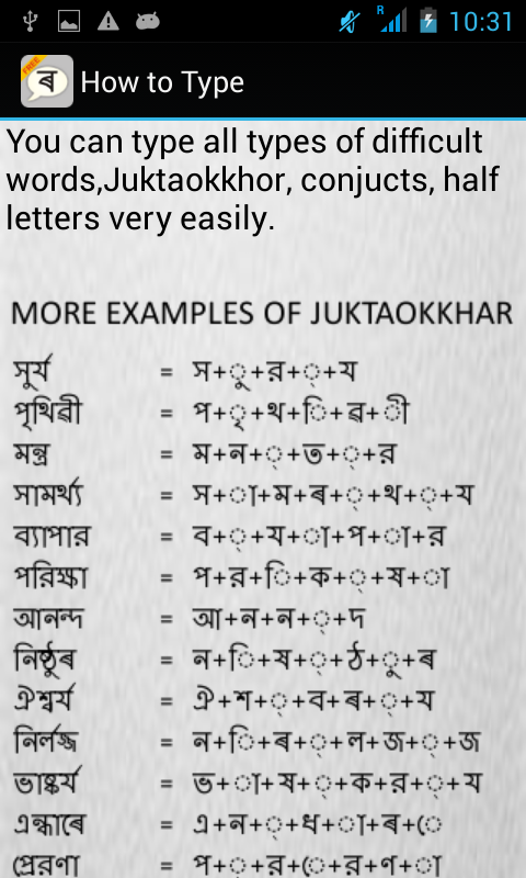 Follow these examples, after some time you will used to Assamese static keyboard IME for Assamese typing.